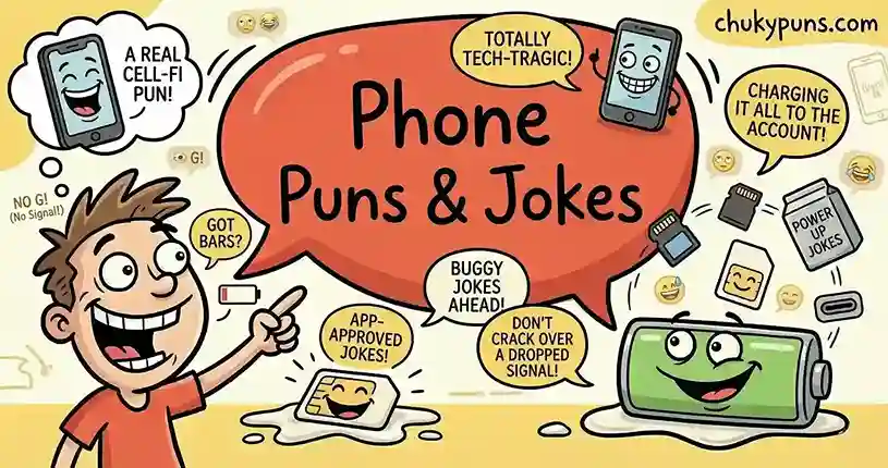 Funny phone puns and jokes are clever, wordplay-based humor that revolves around phones, calling, texting, ringtones, and everything mobile-related. They play on double meanings of phone-related words like “dial,” “ring,” “charge,” and “signal” to create laugh-out-loud moments. Whether you’re a pun lover or just looking for a quick giggle, phone puns are always a great call!
